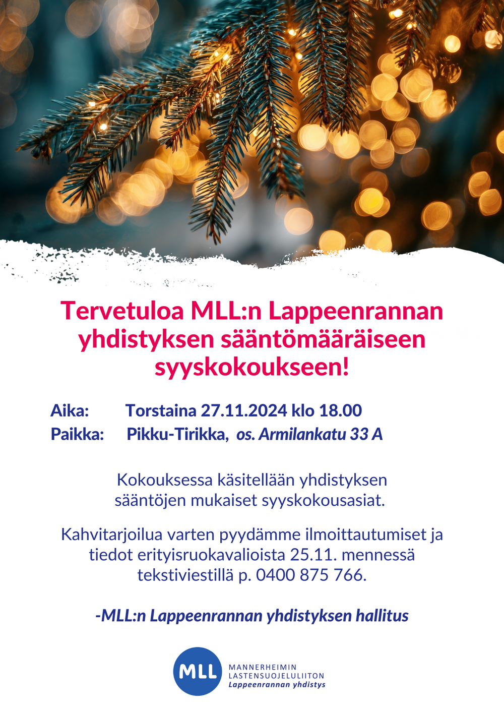 MLL:n Lappeenrannan yhdistyksen syyskokous 27.11.2025