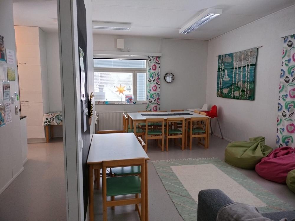 - kokoustila/olohuone, jossa pöytä-/istumapaikat n. 10-12 henkilölle sekä sohva ja säkkituoleja
